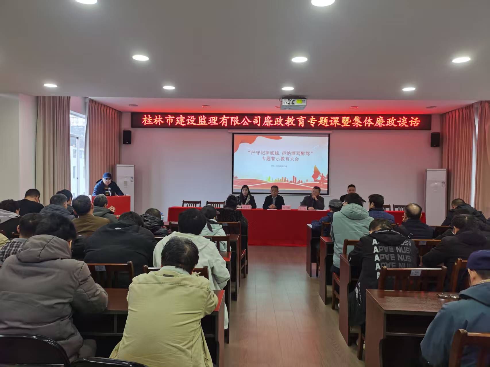 本次本次会议的主要目的是:深刻剖析工程建设领域特别是监理行业易发多发的廉洁风险点,通过政策宣贯、责任落实,进一步增强全体监理人员的纪律意识、规矩意识和廉洁意识,打造一支"技术过硬、作风优良、廉洁高效"的监理队伍,维护公司品牌形象,保障工程项目优质、安全、廉洁推进。